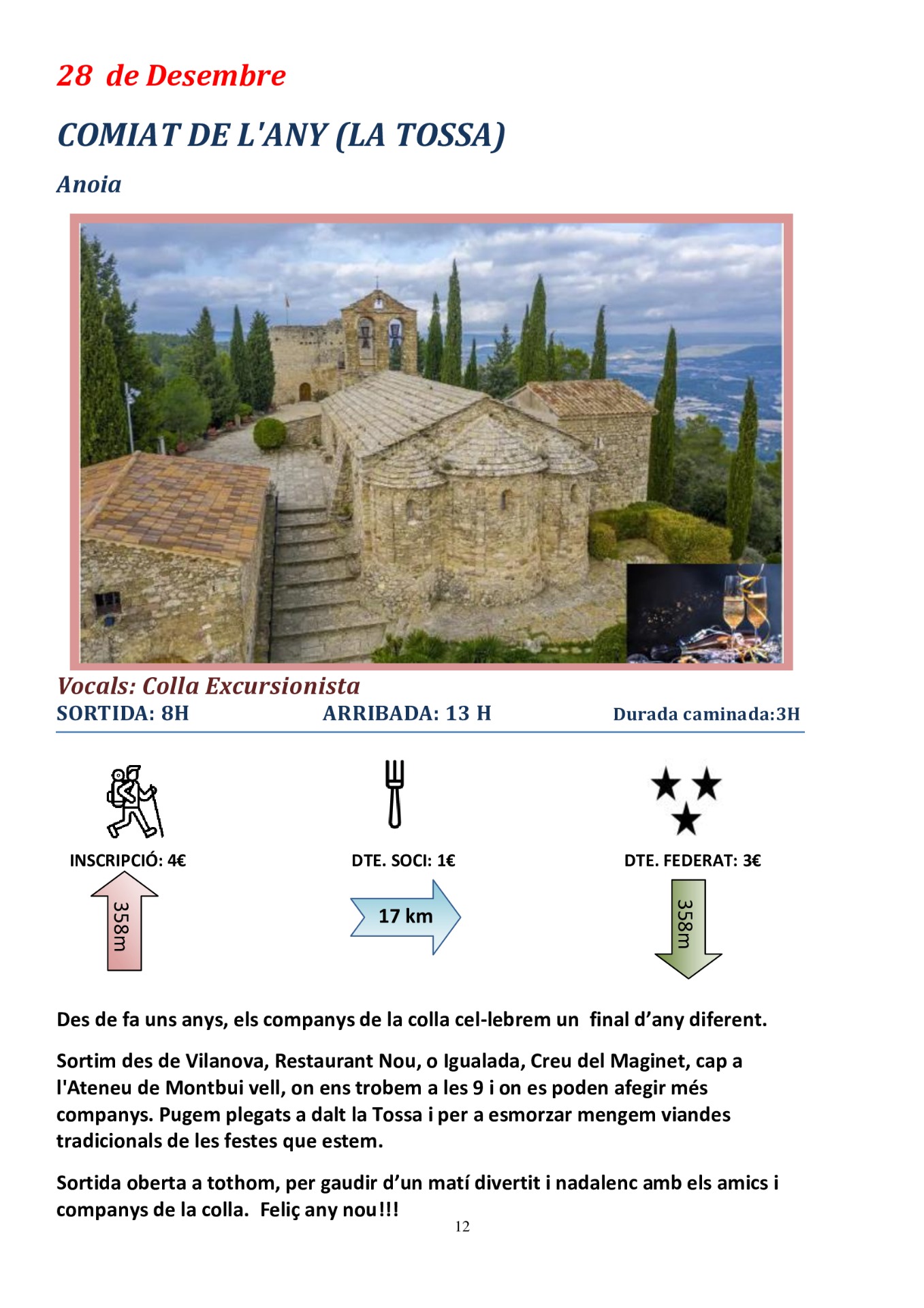També estem a la seu de la colla el dijous de la setmana de la sortida de 19:00 a 20:30 al C/ Montserrat, 28 (Restaurant Nou) de Vilanova del Camí