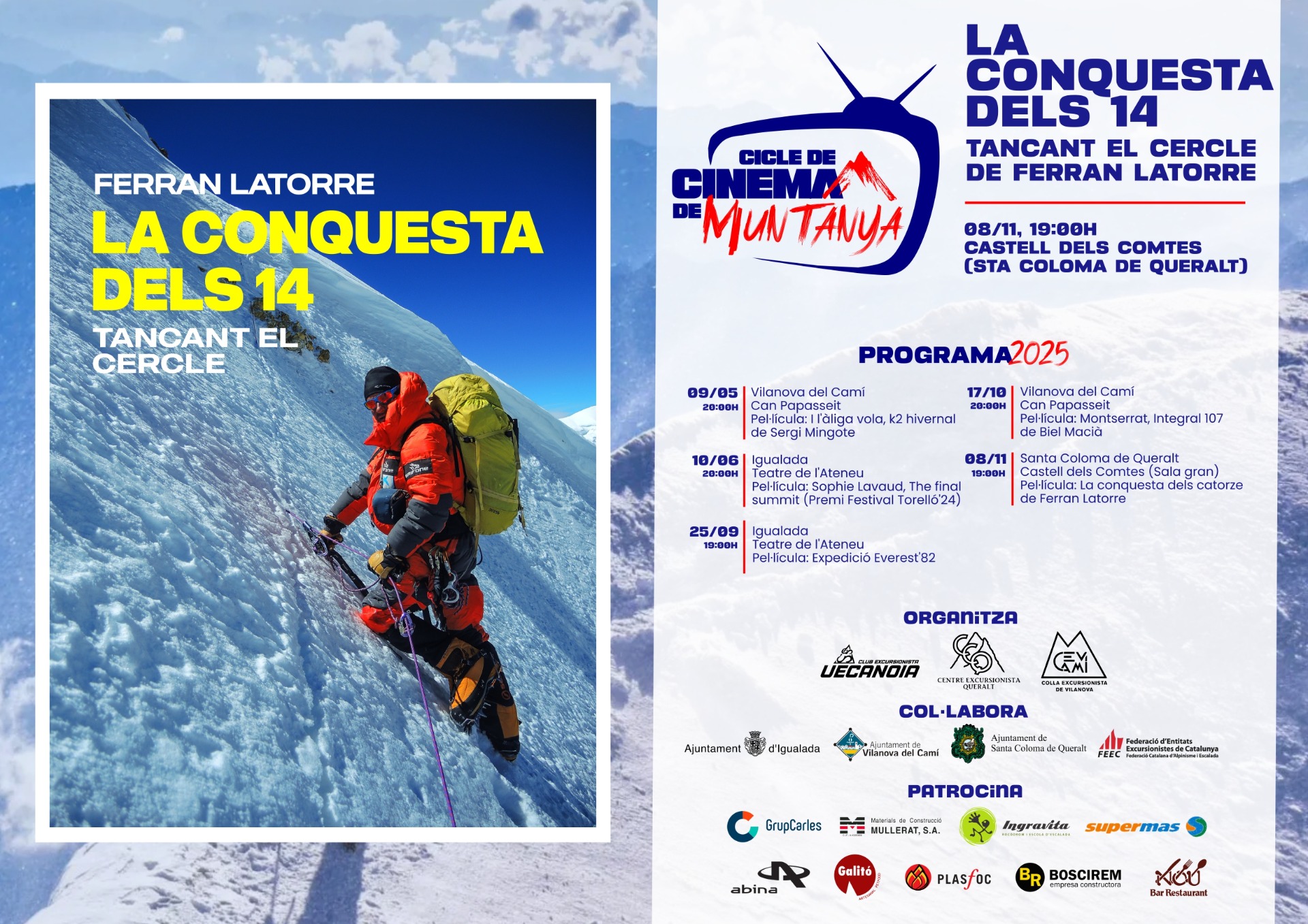 Cicle de Cinema de Muntanya organitzat conjuntament per la Colla Excursionista de Vilanova del Camí, Club Excursionista UECANOIA i el Centre Excursionista de Santa Coloma de Queralt.